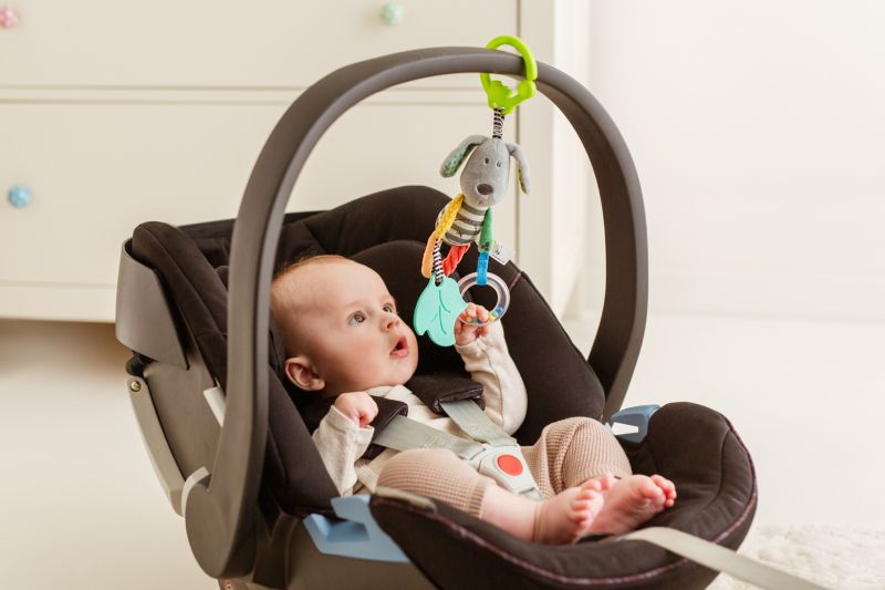 Компактна висулка във формата на куче може да придружава бебето навсякъде, украсявайки столче за кола, количка или легло. Очарователното куче е изработено от материали с разнообразни шарки и текстури, благодарение на които стимулира сетивата на малкото дете, като влияе положително върху развитието на когнитивните му способности. Лапите на кучето са украсени с мека гризалка, която ще успокои възпалените венци и дрънкащ пръстен, пълен с цветни топки. Практичната дръжка, с която е оборудвана играчката, позволява лесното й закрепване навсякъде. Продуктът е предназначен за деца от раждането.