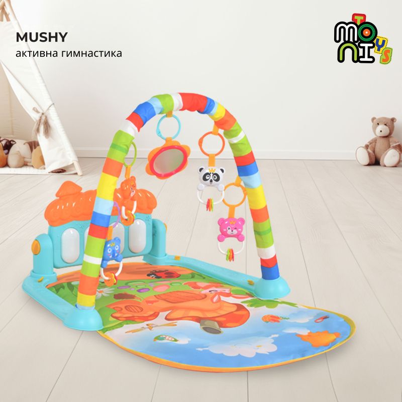 Чрез активната гимнастика се стимулира развитието на детския интелект, моториката на ръцете и краката, разпознаването на различните форми и цветове. Активната гимнастика е изработена от нетоксични материали, безопасни за човешкото здраве. Материал: 100% Полиестер, PP.