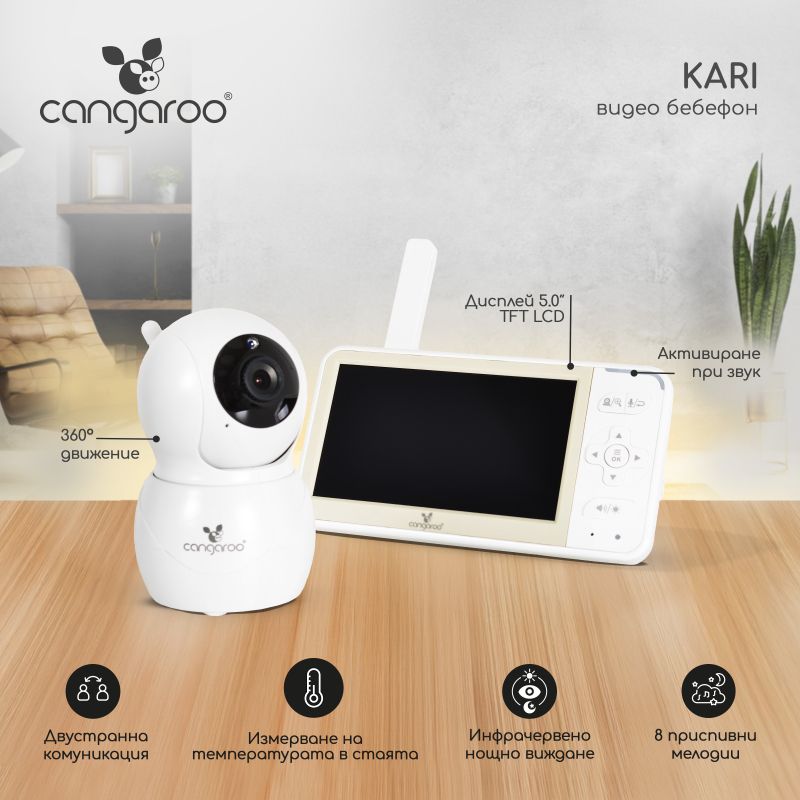 Видео бебефон Kari е перфектното решение за наблюдение и грижа за вашето дете, като съчетава удобство, сигурност и висококачествена технология.