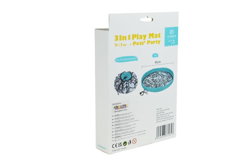 Съхранявайте, играйте и рисувайте. Перфектната мини постелка 3 в 1 за спретнато и лесно забавление при игра. Тази постелка е идеалена за игра в движение. Просто напълнете постелката с любимите си играчки и аксесоари, дръпнете шнура и след това вземете нещата си, където пожелаете. Не само това, тази постелка за игра разполага със сладка тематична основа за животни, която може да бъде оцветена с маркери (не са включени). Тъй като тази постелка за игра е направена от здрава, водоустойчива материя, можете също да я напълните със магичният лунен пясък за да се забавлявате без разпръскване и разпиляване .