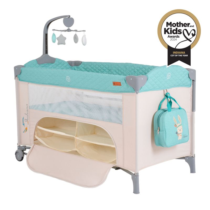 Кошарката Indiana има две нива и това позволява по-дълъг период на употреба, сгъва се лесно и бързо и ви осигурява спокойствие по време на пътуване. Има функция и за прикрепяне към родителското легло.