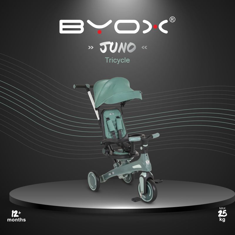 Многофункционалната триколка с родителски контрол Juno расте заедно с детето, като се адаптира към неговите нужди и умения. Подходяща е за деца от 12 до 60 месеца и с максимално тегло до 25 кг.