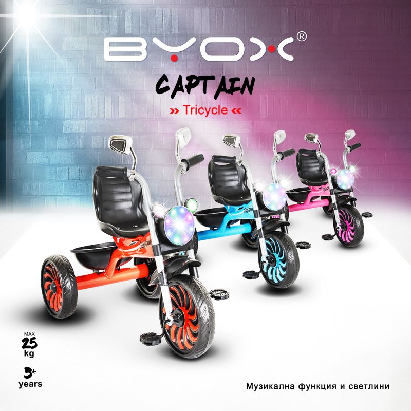 Детска триколка Captain, Byox— забавление, комфорт и развитие в едно! Подходяща от 3 години+ до 25 кг.