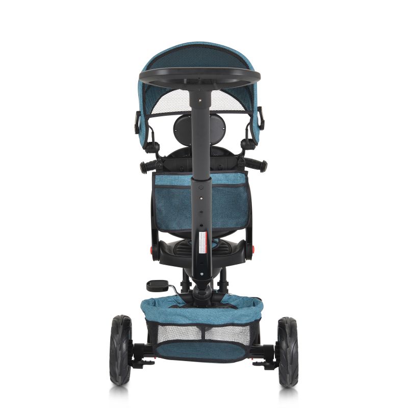 Функции:сгъваемо кормило•Седалка въртяща се на 360°•Сваляща се дръжка•Регулируема облегалка в 3 позиции•Предпазен колан 3-точков•Предна кошничка•Кош заден за аксесоари•Заключване на педалите