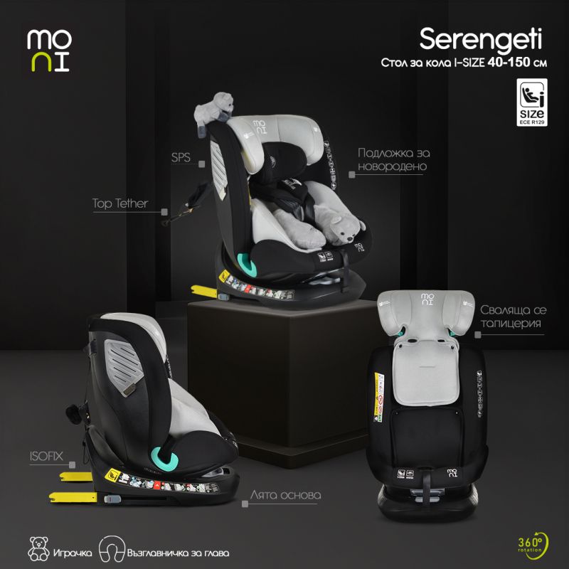 Разгледайте новия стол за кола Serengeti I-size 40-150см - Вашият партньор за безопасност и комфорт на Вашето дете по време на пътуване! Подходящ от 0 месеца + до приблизително 12 години.