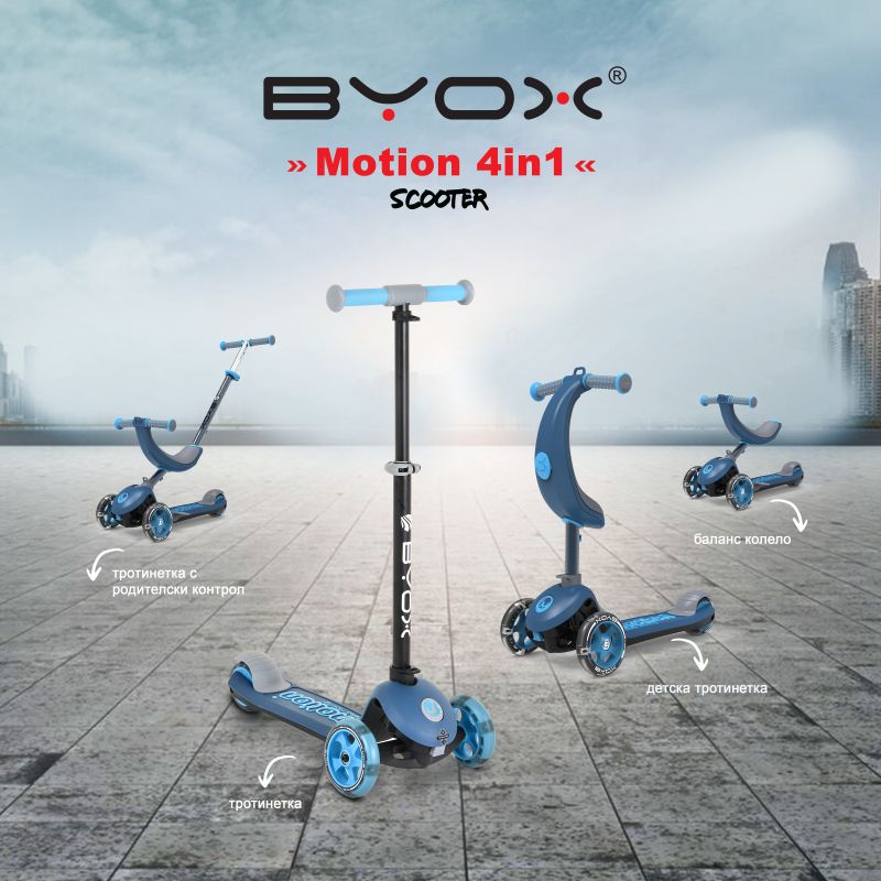 Тротинетката Motion 4в1 е идеалното решение за растящите нужди на вашето дете, като предлага 4 различни режима на използване, подходящи за различни възрасти и етапи на развитие. Със сгъваема и мултифункционална конструкция, тази тротинетка предоставя максимално удобство и дълготрайна употреба.