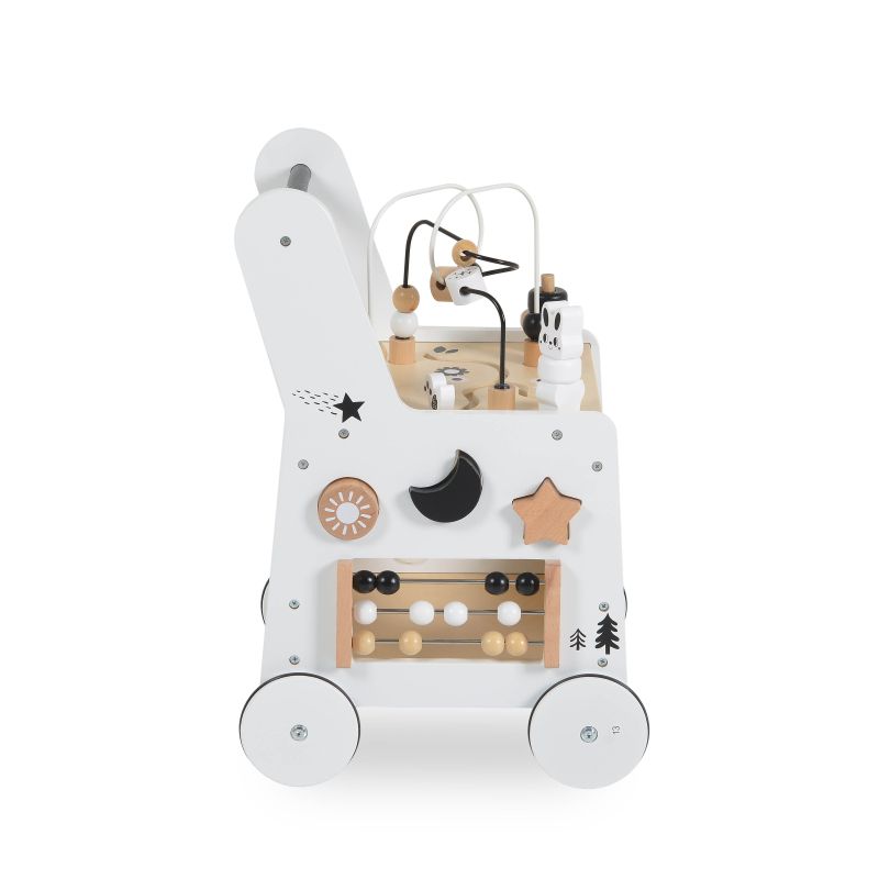 Подкрепете първите стъпки на вашето дете с тази дървена играчка за прохождане от Moni Toys, изработена от висококачествени материали. Освен стабилна опора при ходене, тя предлага разнообразни активности, които превръщат играта в забавление и учене едновременно.