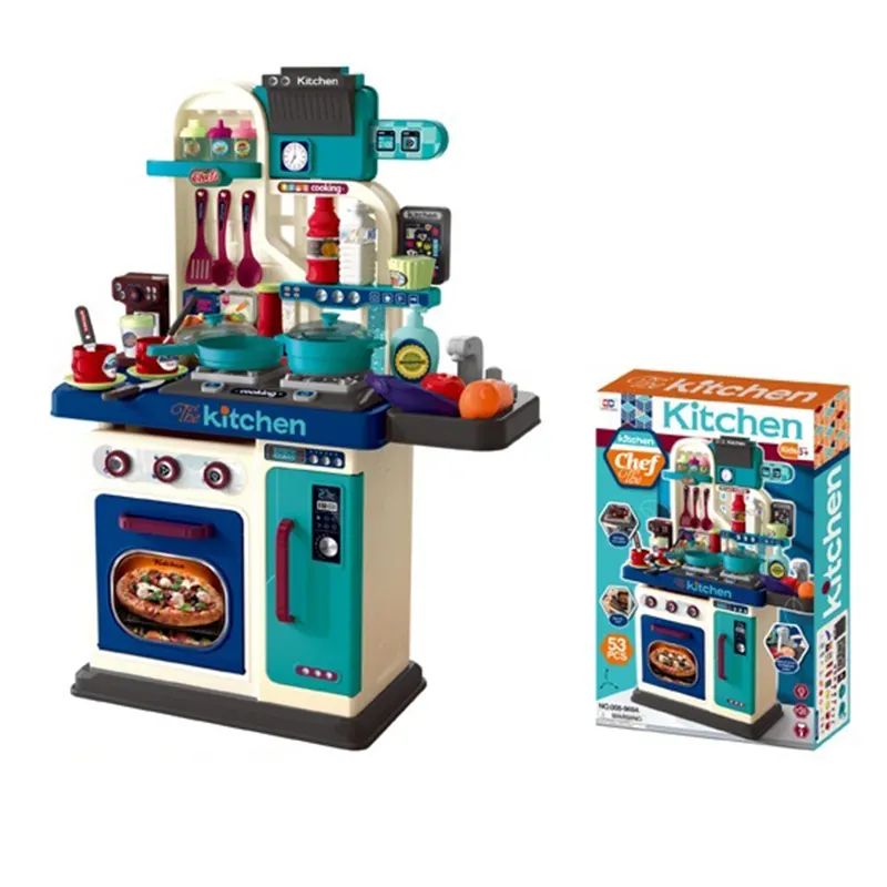 Детската кухня с 53 части е чудесен избор за ролеви игри и забавления у дома. Комплектът включва фурна, котлони, мивка, съдове за готвене, прибори, чаши и разнообразни хранителни продукти. Кухнята е снабдена със звукови и светлинни ефекти, които правят играта по-реалистична и вълнуваща. Тя помага на децата да развиват въображение, креативност и социални умения, като имитира ежедневието на възрастните. Подходяща е за деца над 3 години и е изработена от безопасни материали.
