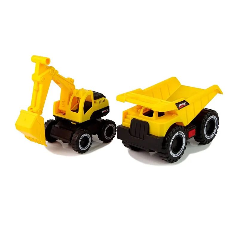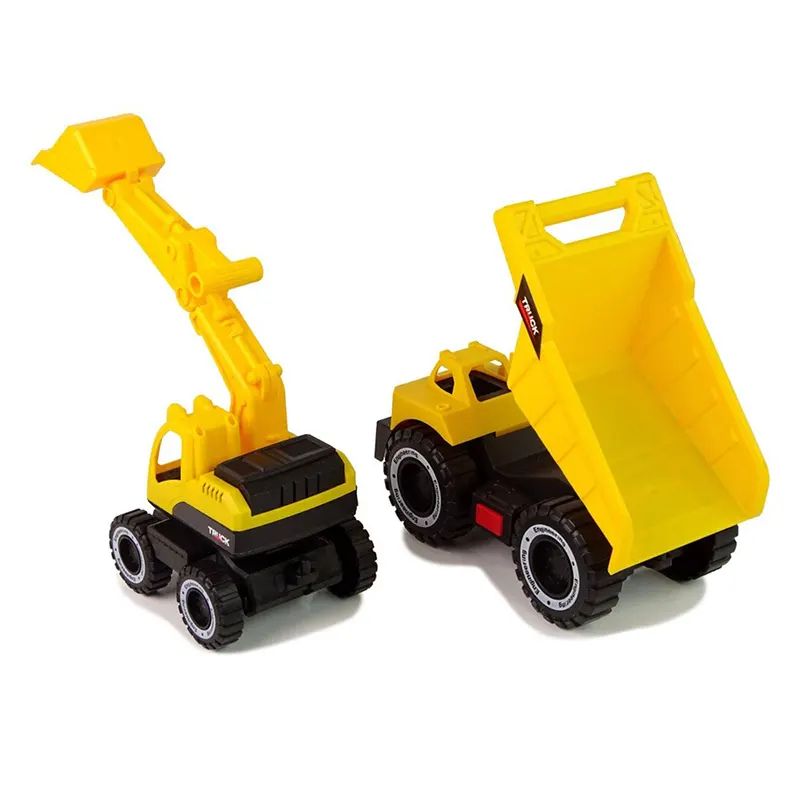 Този голям детски камион превозвач с дължина 64 см е впечатляваща играчка за малките любители на строителните машини. Комплектът включва багер и самосвал, които могат да се товарят и разтоварват от платформата. Камионът е снабден със светлинни и звукови ефекти, които правят играта още по-вълнуваща. Подвижните елементи и реалистичният дизайн развиват въображението и креативността на децата. Изработен е от безопасни и устойчиви материали, подходящ за игра у дома и навън. Подходящ за деца над 3 години.