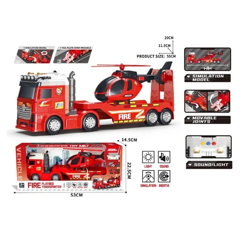 Детски пожарен камион автовоз с хеликоптер 55 см със светлинни и звукови ефекти