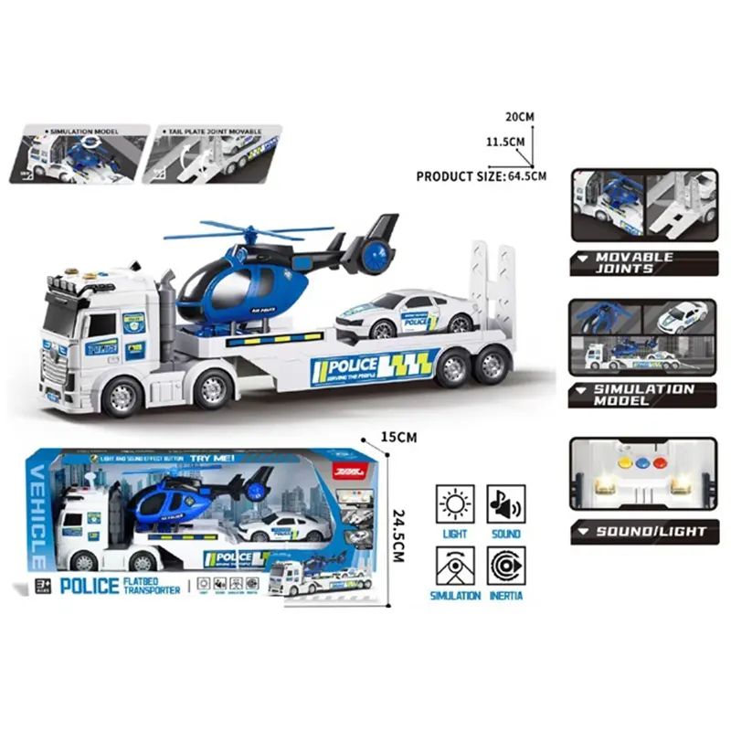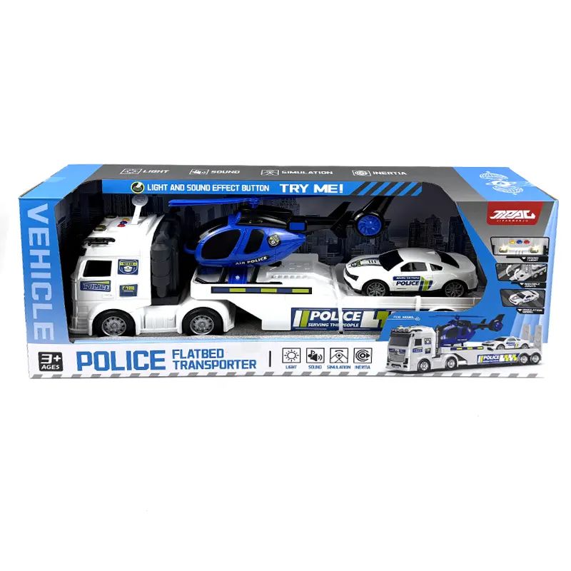 Голям полицейски автовоз с дължина 64 см, включващ хеликоптер и полицейска кола. Със светлини, звукови ефекти и подвижни елементи за реалистична игра.