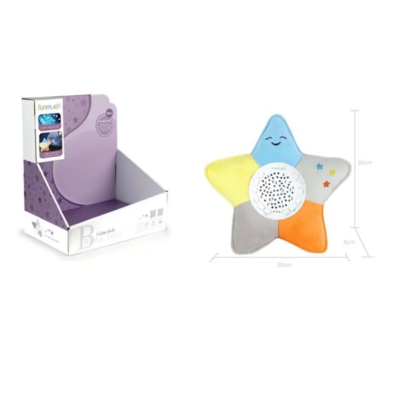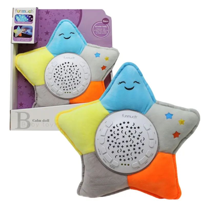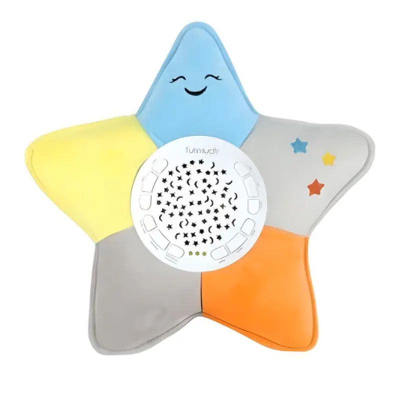 Тази детска нощна лампа във формата на усмихната звезда съчетава уютна светлина, успокояваща музика и красива прожекция на звездно небе. Лампата е изработена от меки и безопасни материали, което я прави подходяща и за най-малките деца. Разполага с няколко мелодии и светлинни ефекти, които създават спокойна атмосфера за сън и отпускане. Проектираната светлина с форма на звезди и луна превръща всяка детска стая в магическо място. Идеален подарък за бебета и малки деца.
