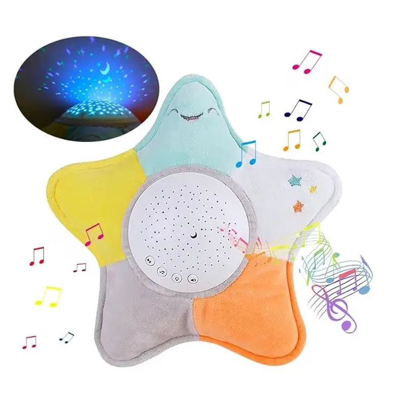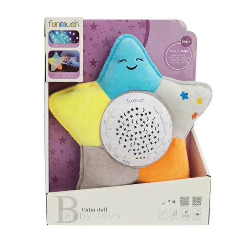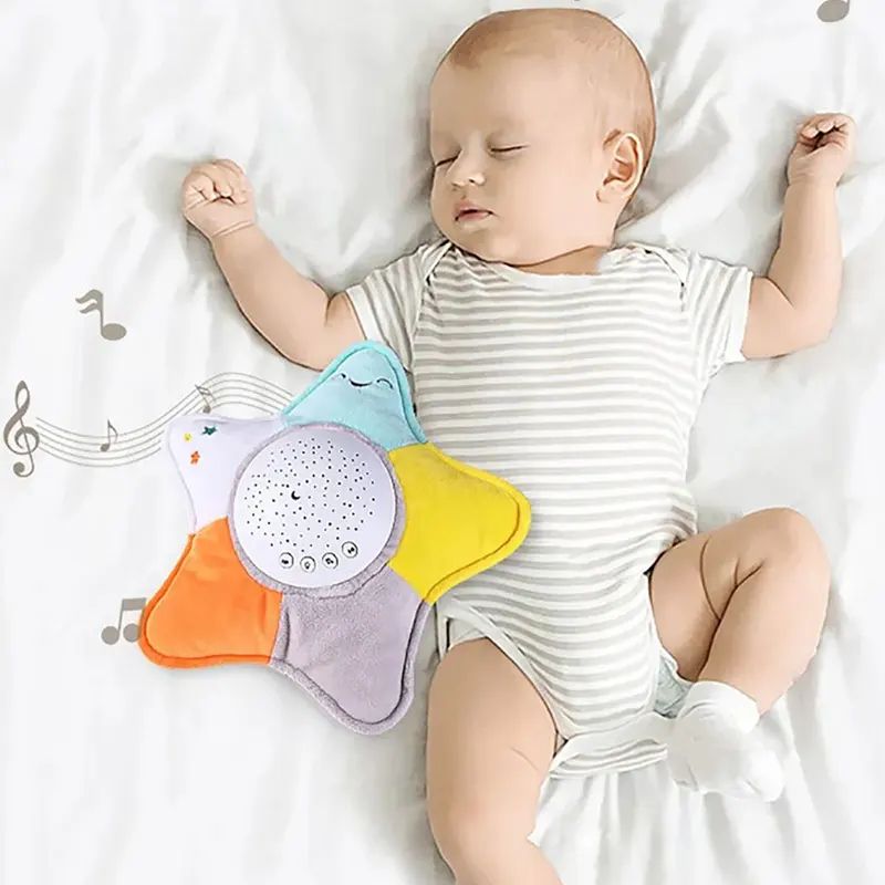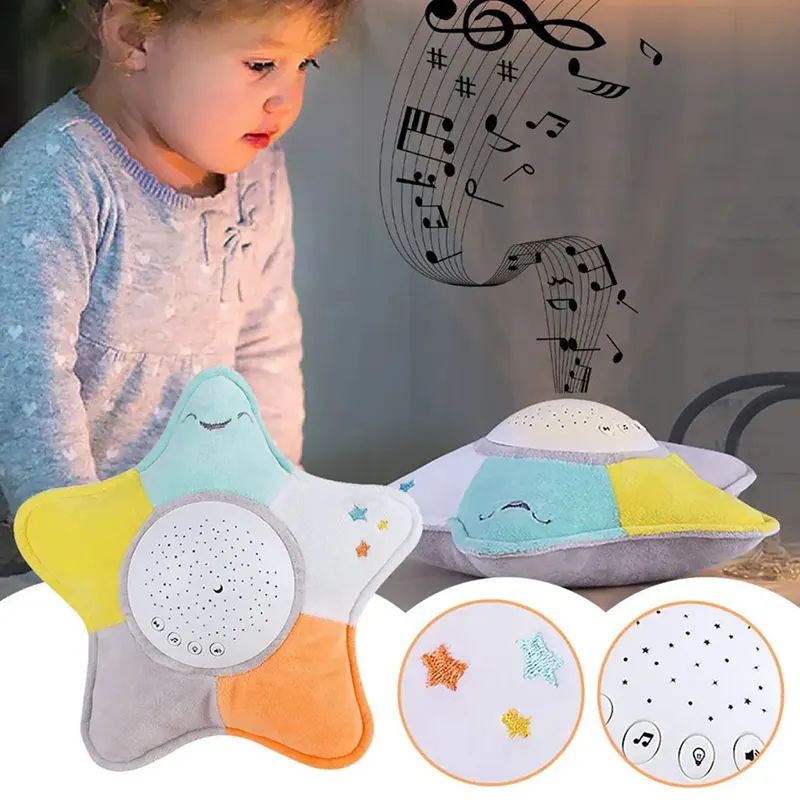 Мека нощна лампа във формата на звезда с музикални мелодии и прожекция на светлини. Подходяща за успокояване и приспиване на бебета и деца.