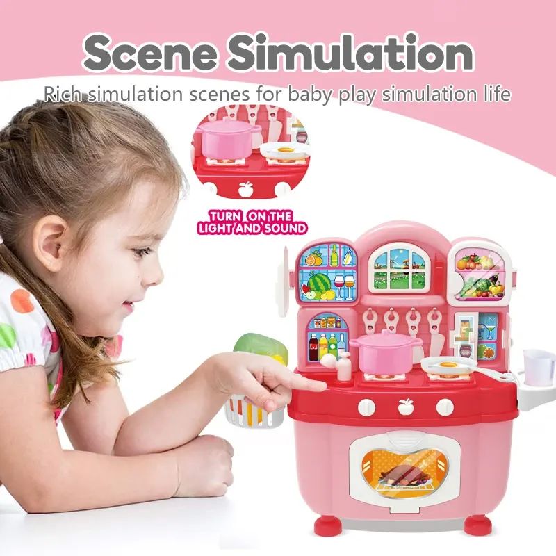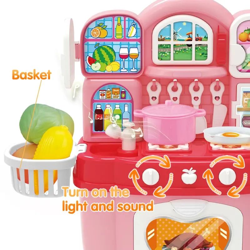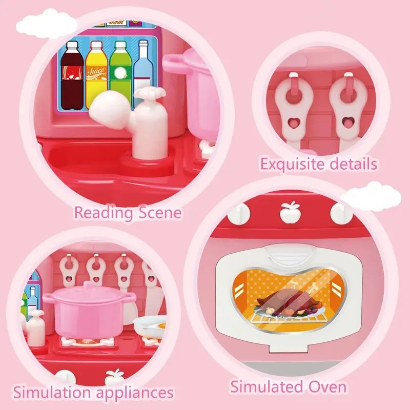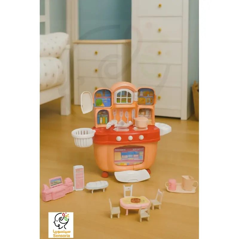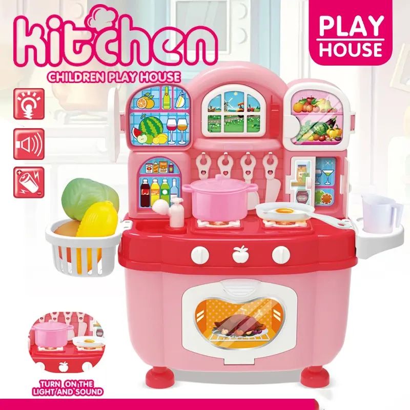 Компактна детска кухня с аксесоари, съдове и хранителни продукти. Със светлинни и звукови ефекти, подходяща за деца над 3 години.