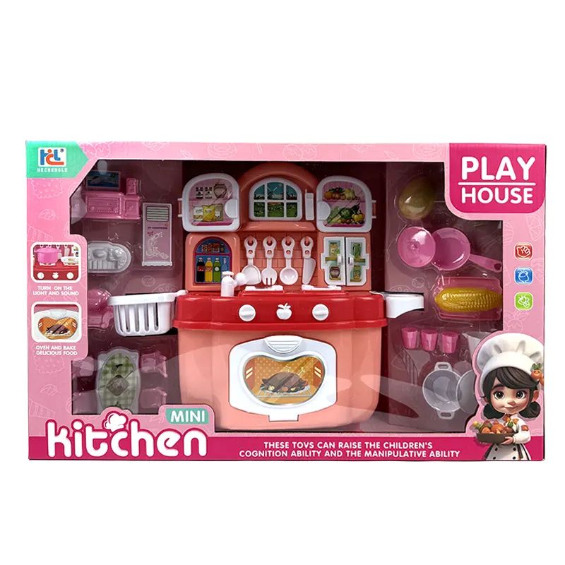 Мини детската кухня е забавен и образователен комплект за ролеви игри. Включва печка с фурна, котлон, прибори, съдове и разнообразни хранителни продукти за игра. Кухнята е снабдена със светлинни и звукови ефекти, които правят играта по-реалистична и увлекателна. Компактният размер я прави удобна за поставяне навсякъде в детската стая. Играта с кухнята помага на децата да развиват въображение, социални умения и креативност. Подходяща е за деца над 3 години.