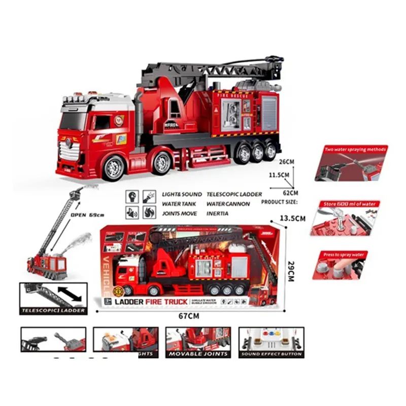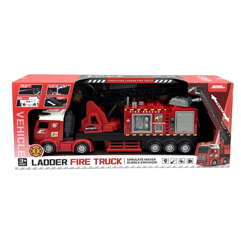 Голям пожарен камион 67 см със стълба, водна пръскачка, светлини и звук