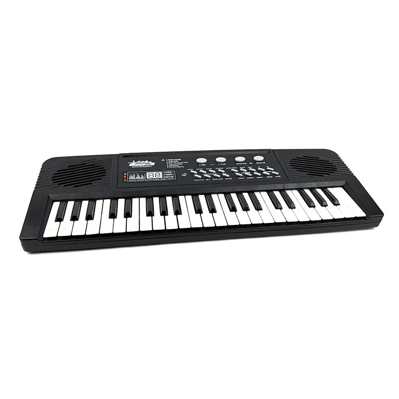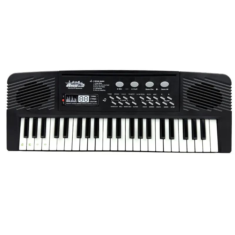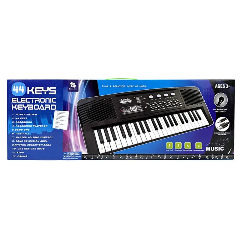 Електронно пиано за деца с 44 клавиша, микрофон и USB захранване. С функции за запис, демо песни, ритми и барабани.