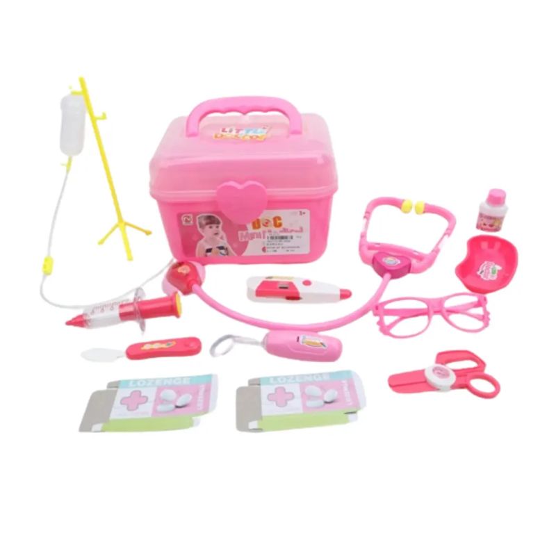 Образователен и забавен комплект за малки лекари! Включва куфарче и медицински инструменти като слушалки, спринцовка, очила и термометър – всичко, което едно дете има нужда, за да се почувства като истински доктор.