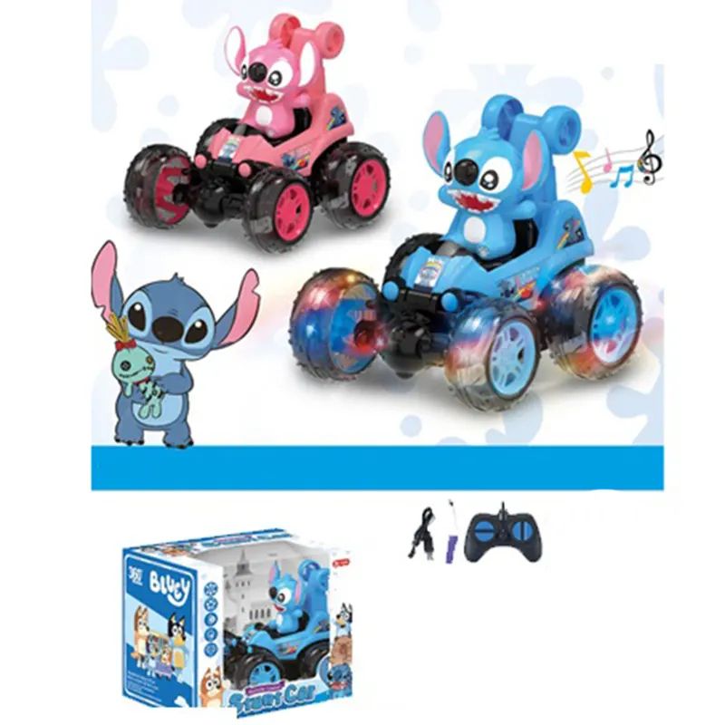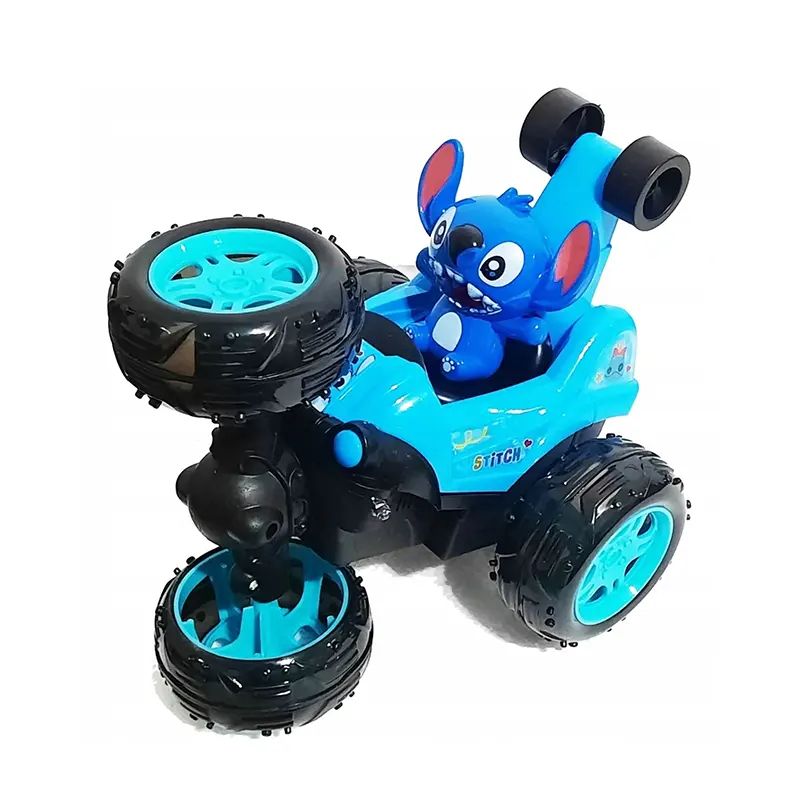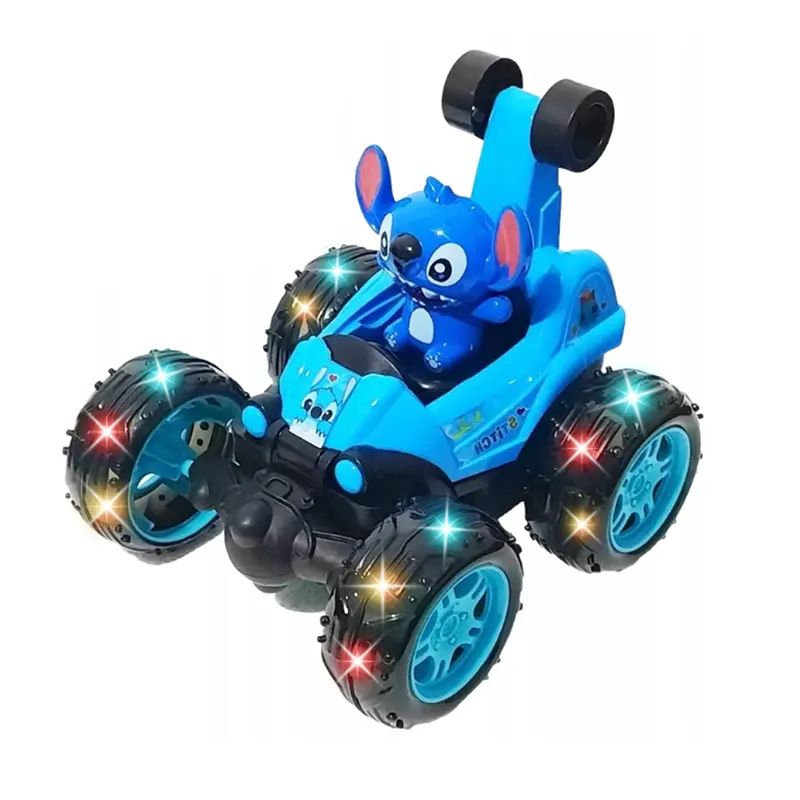 Забавна детска кола с дистанционно управление и герой Stitch. Със светещи колела, музика и въртене на 360°, тази играчка гарантира весела и динамична игра за всяко дете.