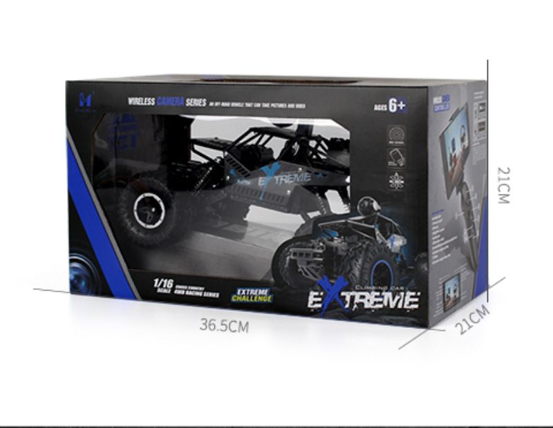 Екстремна офроуд RC кола с Wi-Fi камера и управление от смартфон. С големи гуми, стабилно окачване и мощен двигател за приключения върху всякакъв терен.