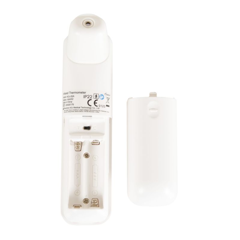 • LCD дисплей с цветова индикация: бял – режим на готовност; зелен – 32.0°C–37.5°C; оранжев – 37.6°C–38.0°C; червен – 38.1°C–42.9°C