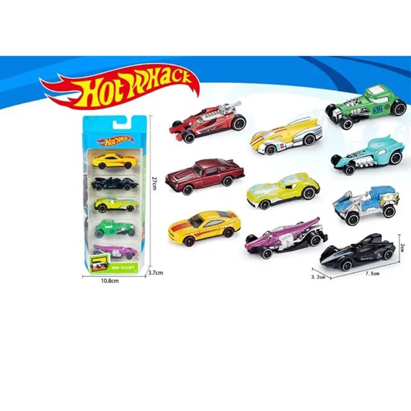 Комплект от 5 метални колички Hot Whack с различни дизайни и цветове. Изработени от висококачествен метал с пластмасови детайли. Подходящи за деца над 3 години.