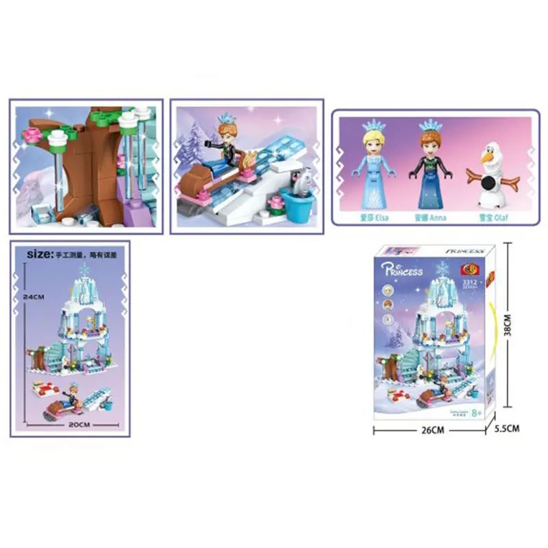 Конструктор Princess с 321 части за сглобяване на леден замък. Включва фигурки на Елза, Анна и Олаф. Подходящ за деца над 8 години.