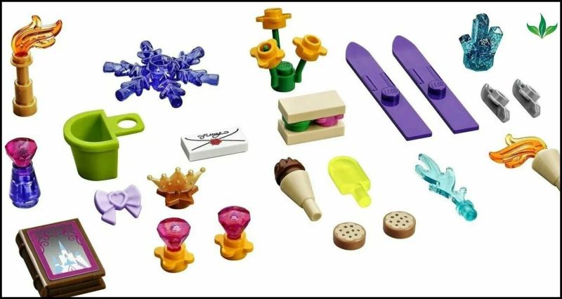 Комплектът съдържа 321 висококачествени елемента, с които децата могат да сглобят своя собствен приказен замък от лед и сняг.