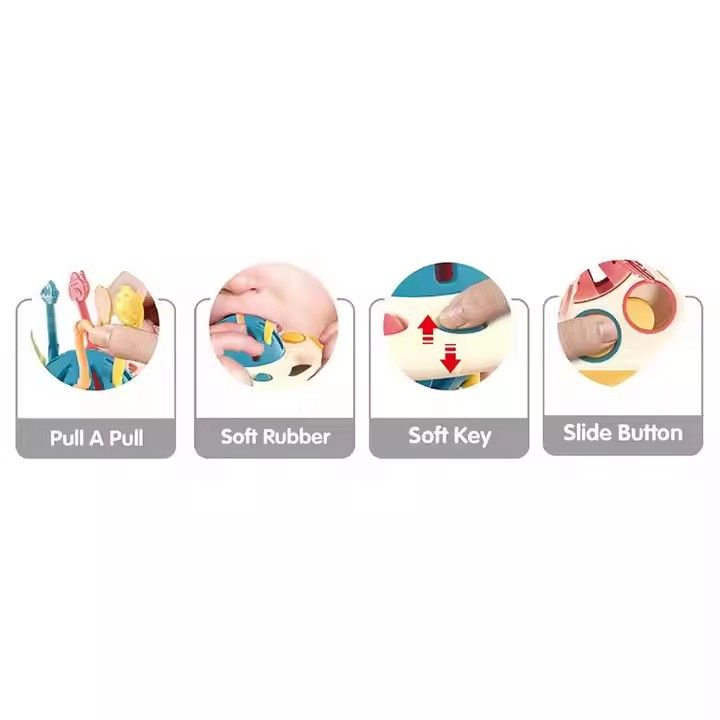 • 6 силиконови въженца с различни текстури, форми, вибрации– за развитие на фината моторика