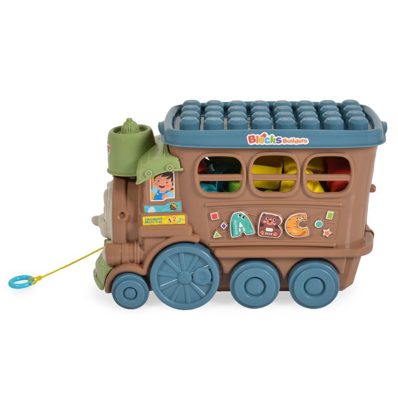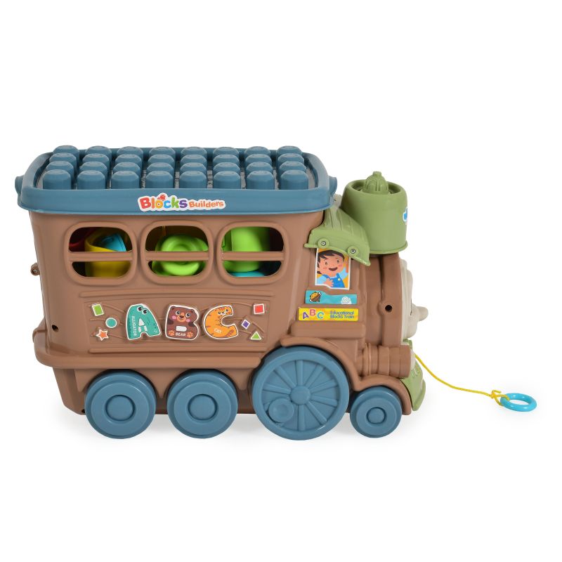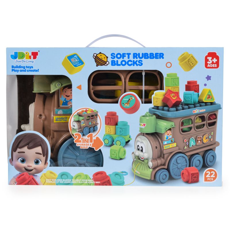 Забавна играчка 2 в 1 – конструктор и влакче за дърпане! Влакчето комбинира движение и учене, като развива въображението, фината моторика и координацията. Меките гумени блокчета могат да се използват както за сортиране, така и като части от конструктор, което превръща играта в още по-занимателно приключение.