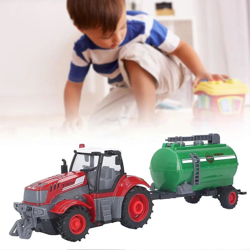 Тракторът разполага със светлини и плавно управление напред, назад, наляво и надясно, което го прави идеален за малки любители на селскостопанските машини. Ремаркето се закача и откача лесно, а в комплекта има акумулаторна батерия и USB зарядно.
