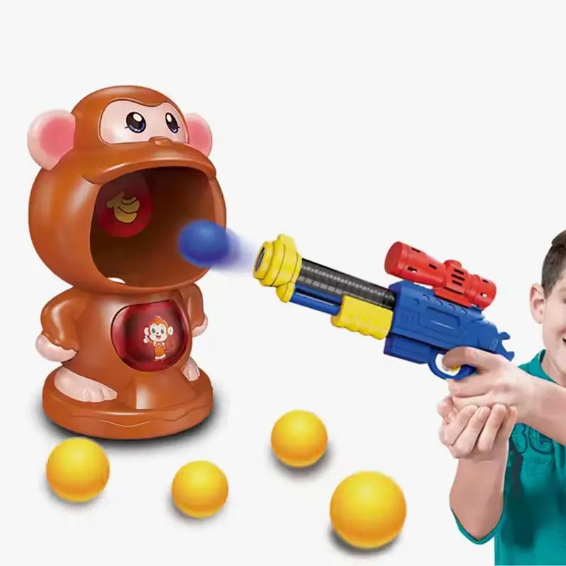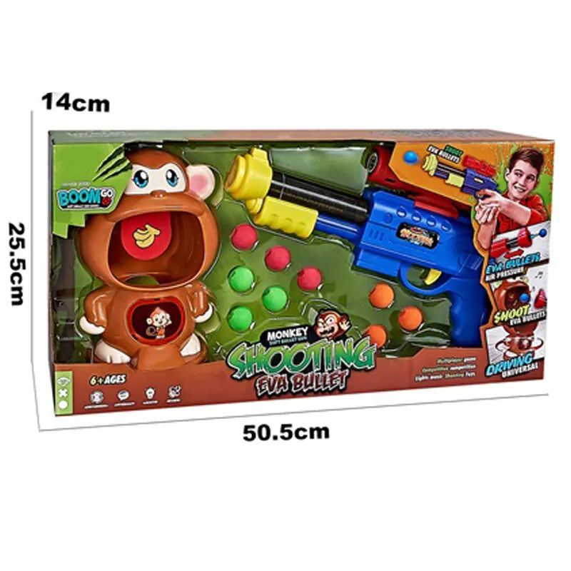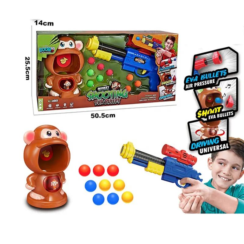 Детски комплект за стрелба с пистолет и движеща се маймунка, EVA топчета