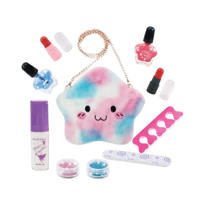 Подарете на детето си вълшебни мигове с този детски комплект за грим с пухкава чантичка звездичка! Комплектът е специално създаден за малки дами, които обичат да се грижат за своя външен вид и да имитират мама.