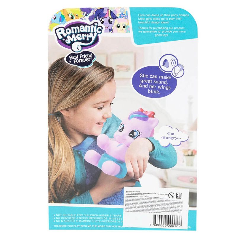 Очарователно интерактивно пони Romantic Merry с крилца и магическа пръчка. Издава звуци, движи крилата си и забавлява децата с нежни ефекти.
