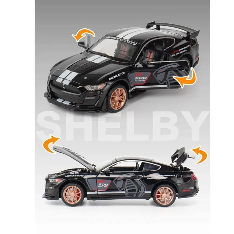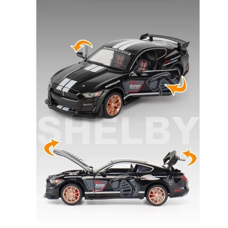 Детайлен метален модел на Shelby GT500 в мащаб 1:24. С отварящи се врати, светлини и звуци. Подходящ за деца и колекционери.