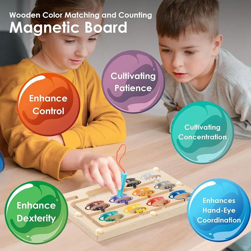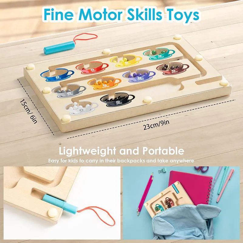 Дървена магнитна дъска – игра за цветове и координация с топчета, лабиринт
