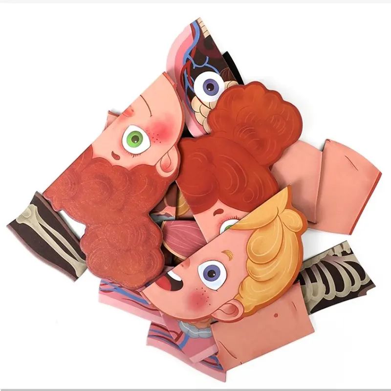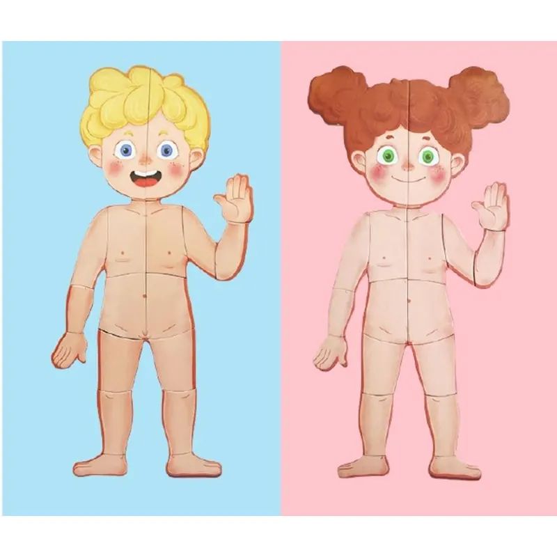 Пъзелът съдържа изображения както на момче, така и на момиче, за да помогне на децата да разпознават разликите в човешката анатомия.