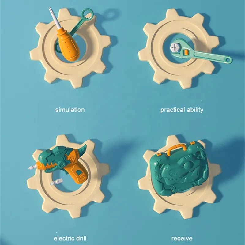 Играчката съдържа електрически винтоверт във формата на динозавър, отвертка и множество цветни болтове и пластини. Масата е стабилна, лесна за сглобяване и служи като основа за творческа игра.