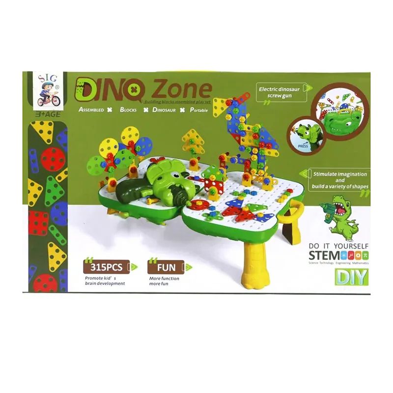 Детски конструктор Dino Zone с винтоверт и маса – 315 части