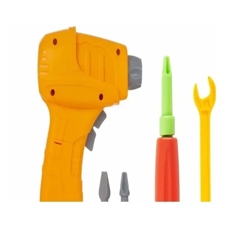 Включен е електрически винтоверт, отвертка и разнообразни форми – колелца, болтове, квадратчета и триъгълници, които позволяват на децата да изграждат уникални конструкции и модели.