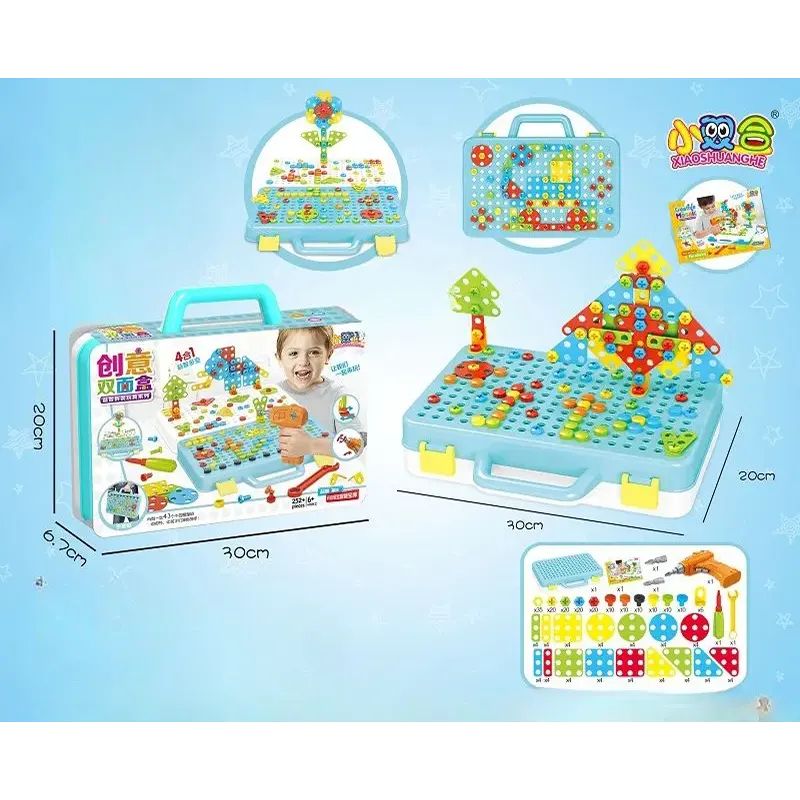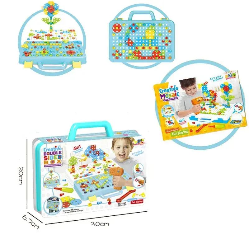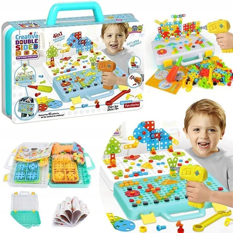 Детска мозайка с двустранна дъска и винтоверт – 4 в 1, 252 части