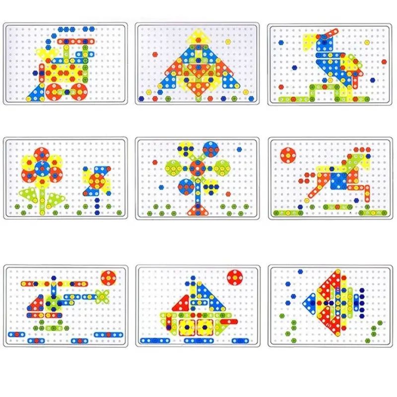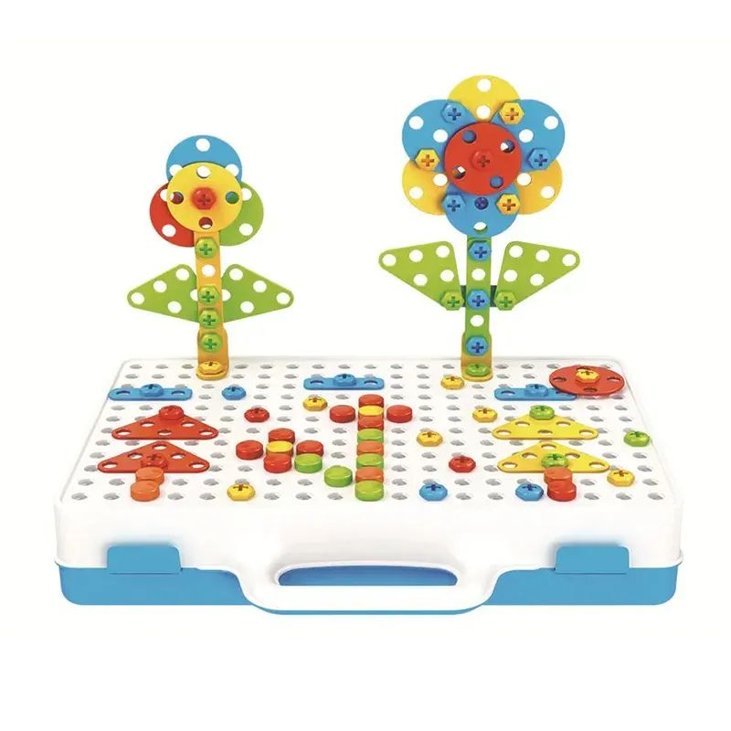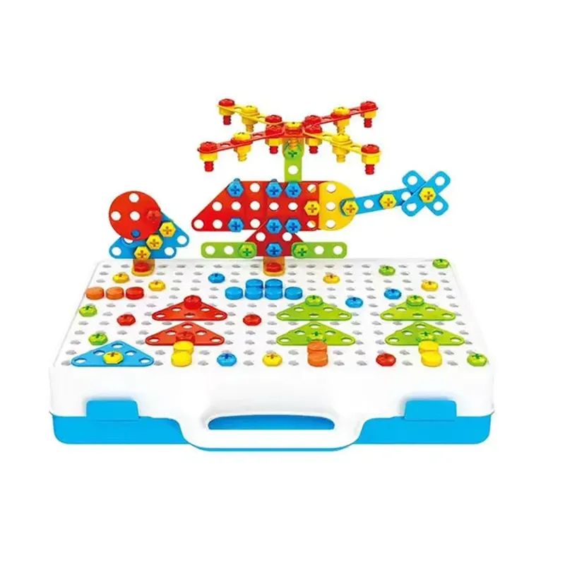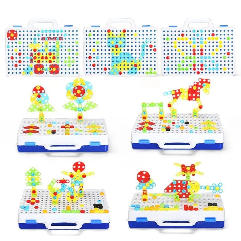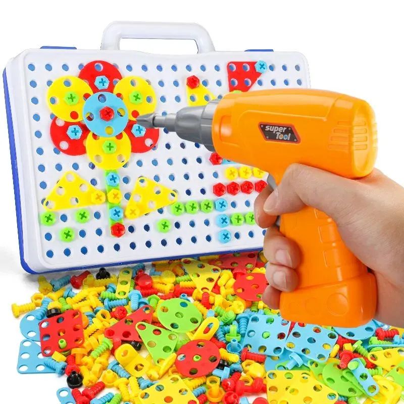 Създавай, конструирай и се забавлявай с този детски комплект мозайка с винтоверт и двустранна дъска!
