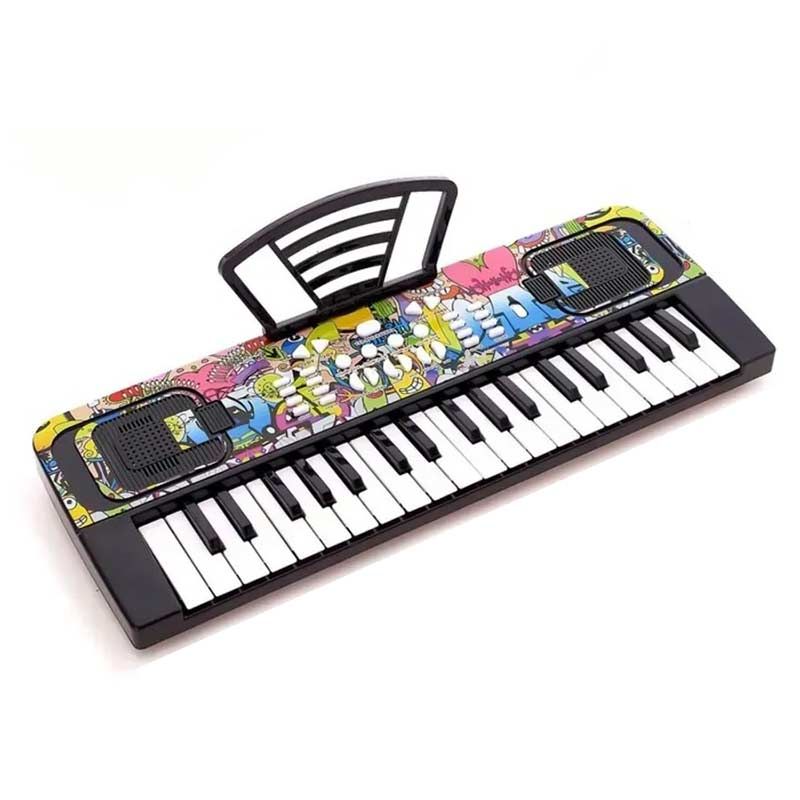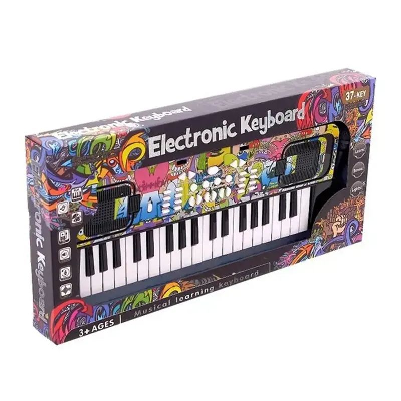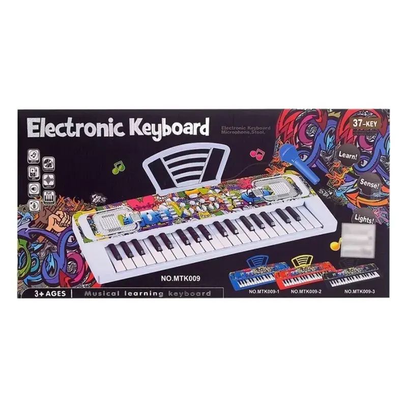 Клавиатурата разполага с 37 клавиша, вграден микрофон, MP3 функция и 10 демо мелодии, които ще зарадват всяко дете. Яркият и атрактивен дизайн с цветни графити прави играта още по-забавна, а удобната стойка за ноти улеснява обучението и импровизациите.