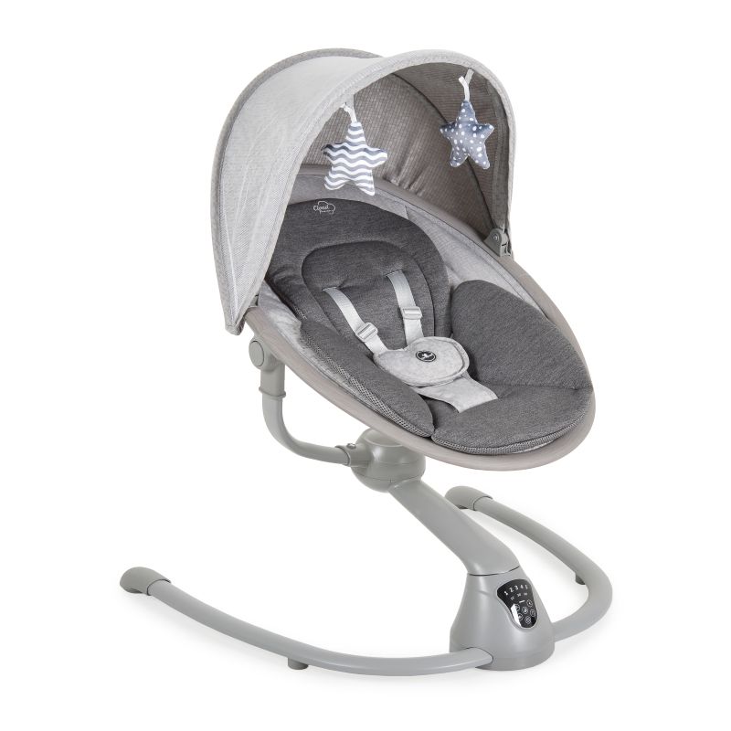 Функции:5 скорости на люлеене; таймер за автоматично изключване с 3 възможности; музикална кутия с 12 мелодии и 5 природни звука с опция за регулиране на звука; функция “шезлонг“; въртене на седалката; детектор за движение на детето