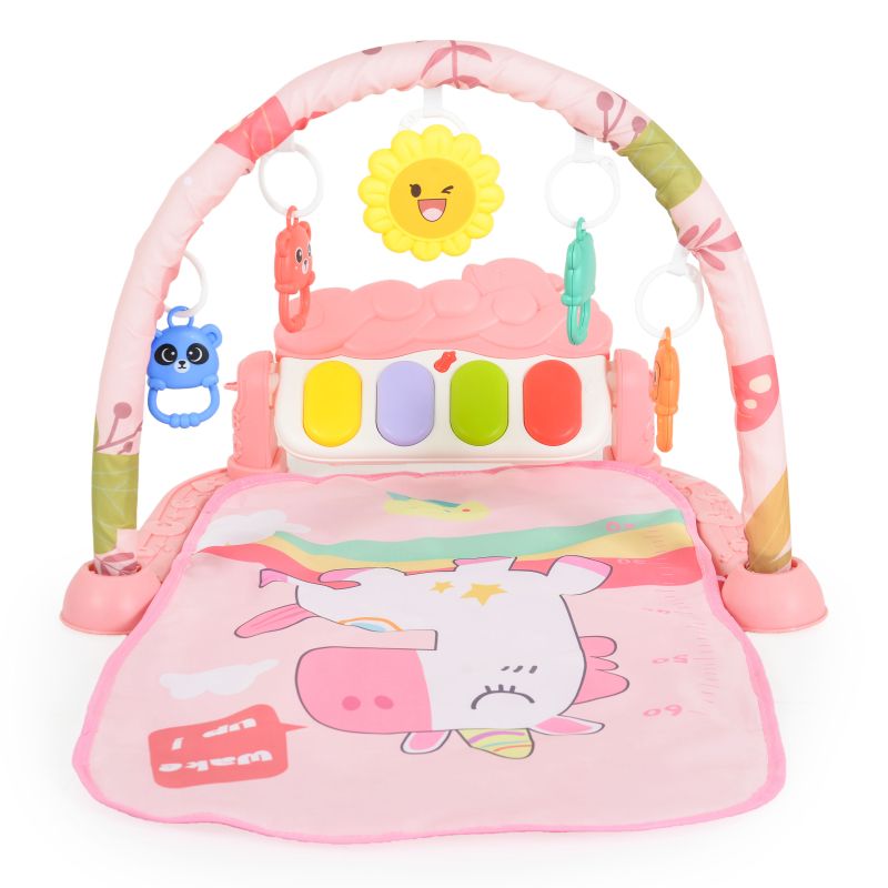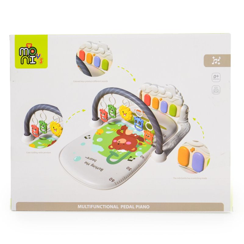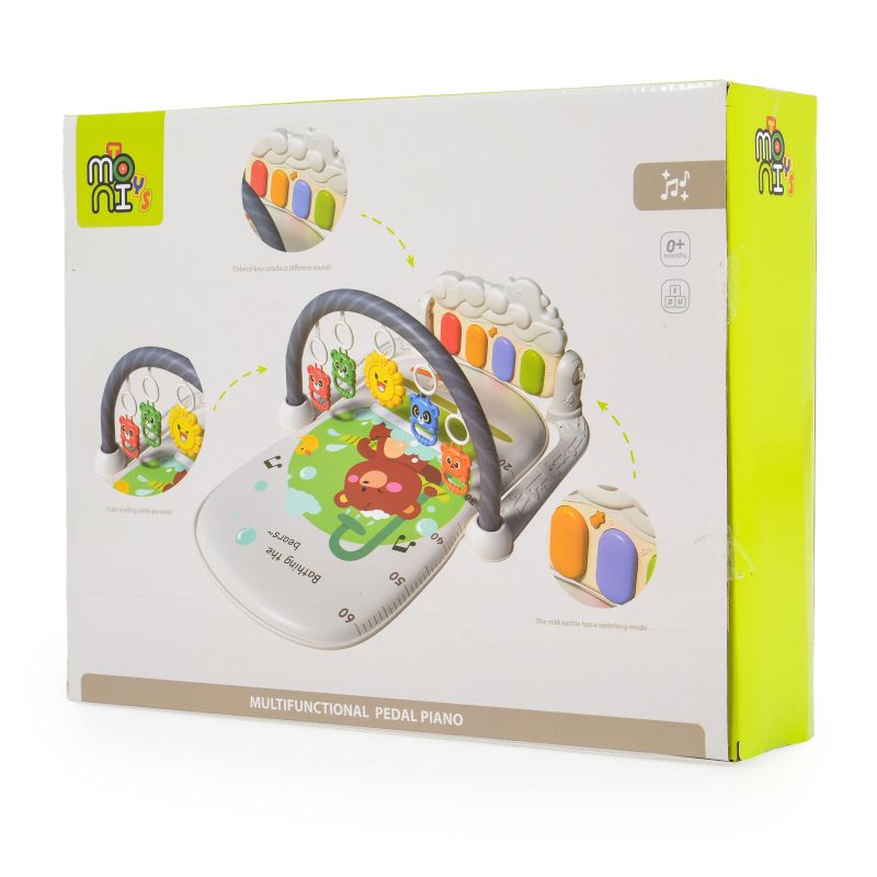 Към продукта са включени няколко цветни играчки, които могат да се поставят на грифа и музикална играчка пиано.