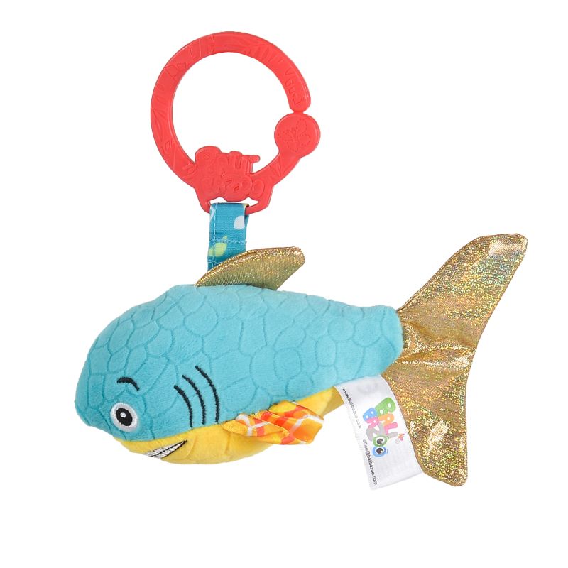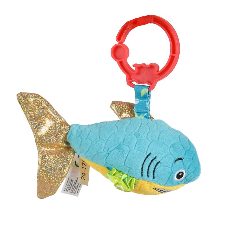 Висулка акула Winbell е мека и занимателна играчка, създадена да стимулира сетивата на бебето още от първите месеци. Разнообразните текстури насърчават тактилното изследване, а шумолящата опашка и забавният звук при стискане поддържат интереса на детето. Благодарение на практичната щипка играчката лесно се прикрепя към количка, кошара или столче за кола.