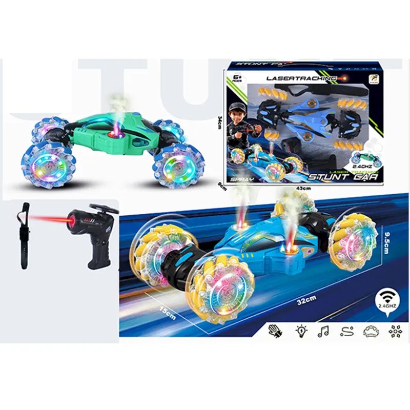 Интерактивна каскадна количка с лазерно управление, пушек, ярки LED колела и музикални ефекти. Мощен модел за ефектни каскади и 360° въртене.