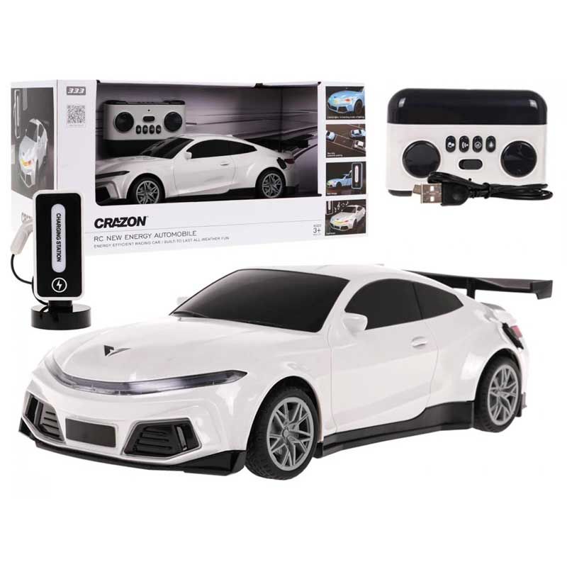 Детска спортна електрическа кола Crazon New Energy със зарядна станция, RC в бял цвят