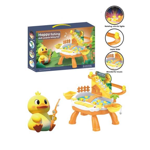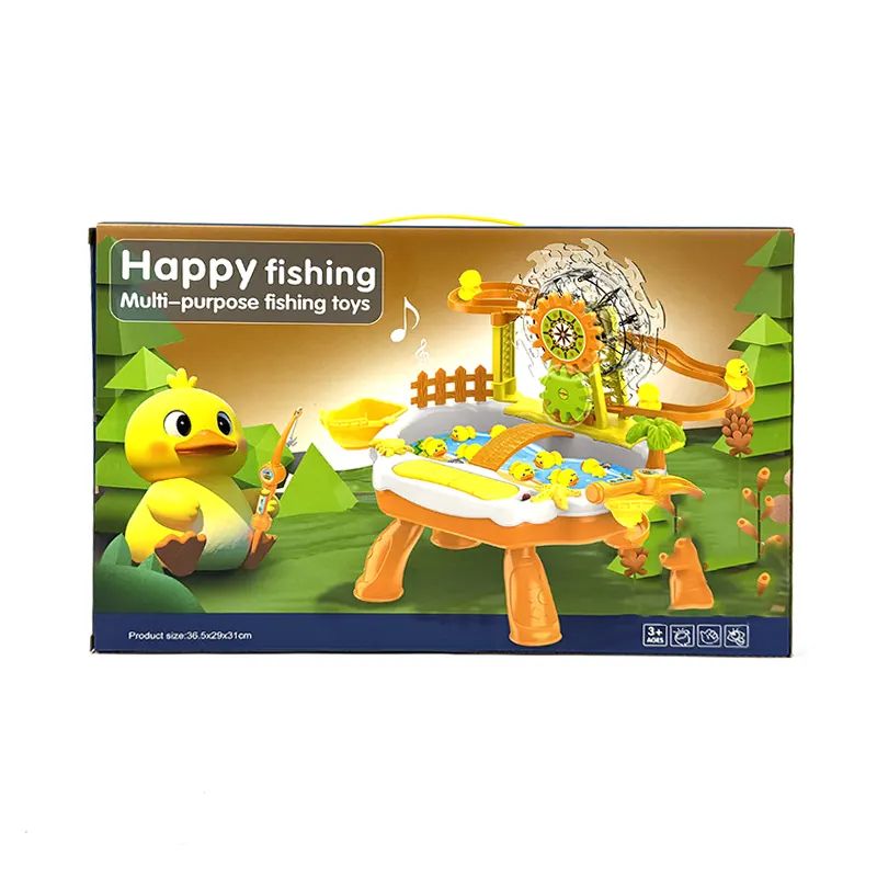 Подарете на детето часове забавление с този мултифункционален риболовен комплект Happy Fishing. Комплектът включва стабилна масичка, множество малки патенца, въртящо се водно колело, канали за движение и риболовни въдици. Всичко е създадено така, че играта да бъде динамична, интересна и изпълнена с открития.