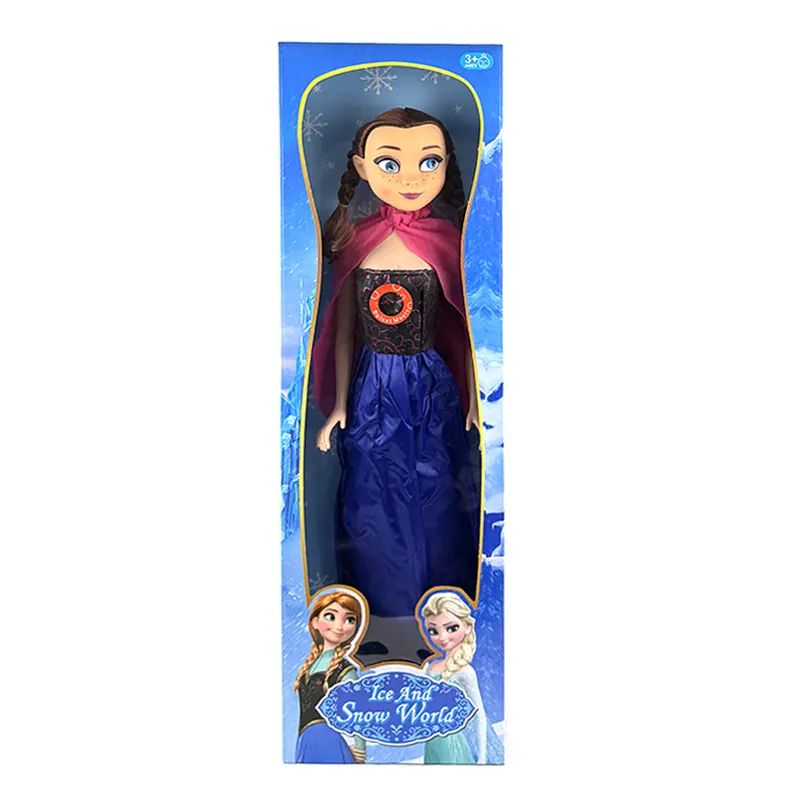 Тази красива кукла Анна с височина 70 см е създадена, за да пренесе децата в магичен зимен свят, изпълнен с приключения и въображение. Куклата е облечена в дълга рокля в наситени цветове, допълнена от стилна пелерина, която придава приказен и завършен вид.